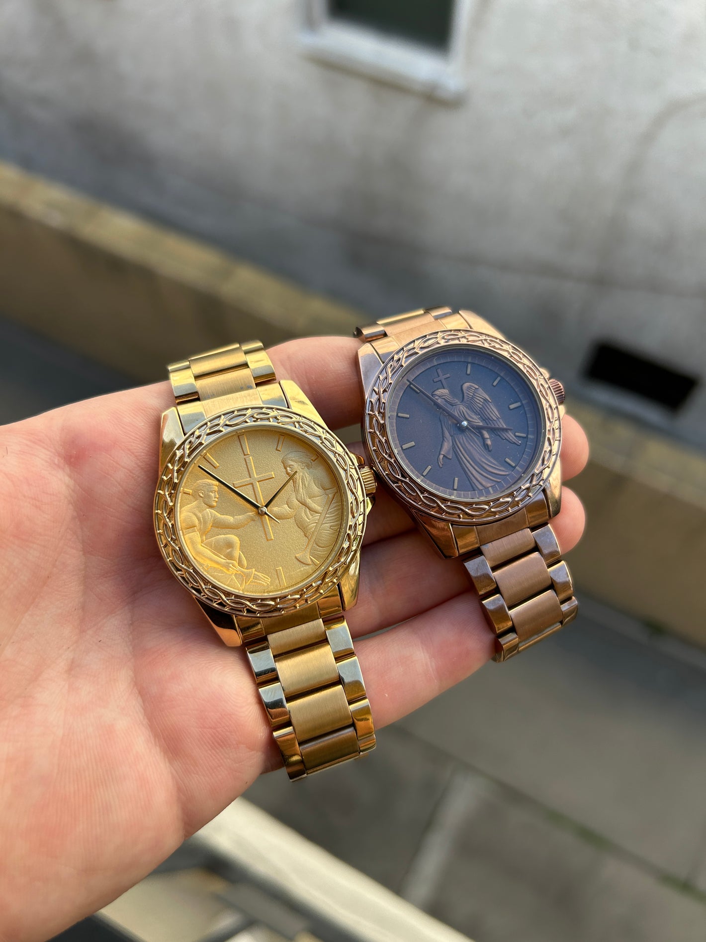 Our Christian Watches unite timeless design with spiritual meaning. Featuring engraved crosses, angelic symbols, and biblical inspiration, each timepiece reflects strength, grace, and unwavering belief — a powerful reminder of God’s presence in every moment.