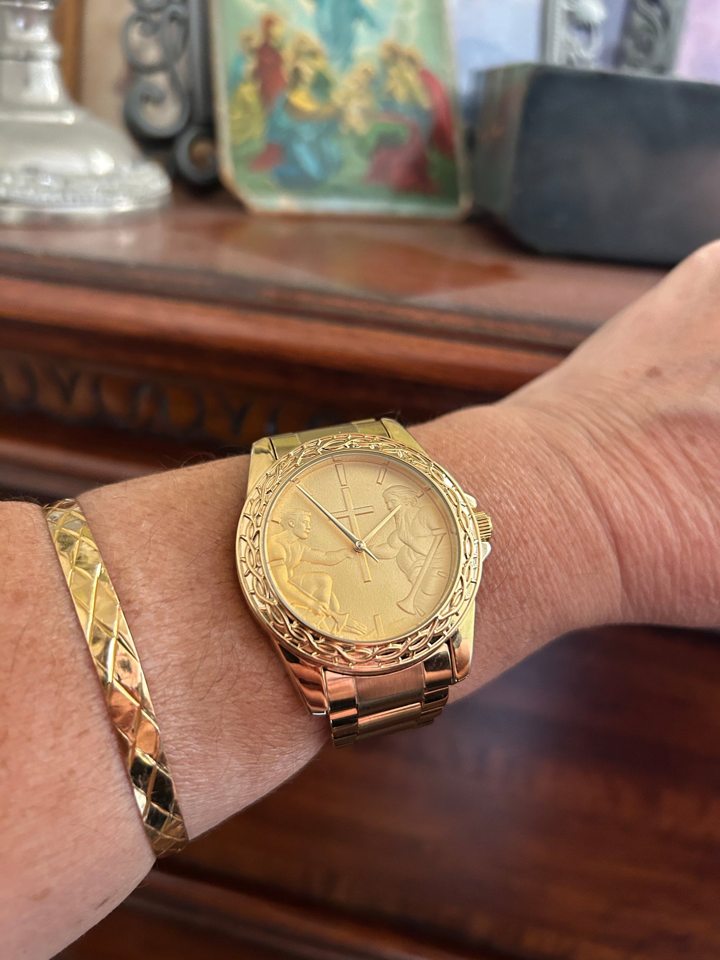 With every glance at your wrist, the symbols of faith come to life — a daily reminder of divine strength and purpose. Inspired by biblical heritage, this watch blends sacred meaning with bold, modern design.